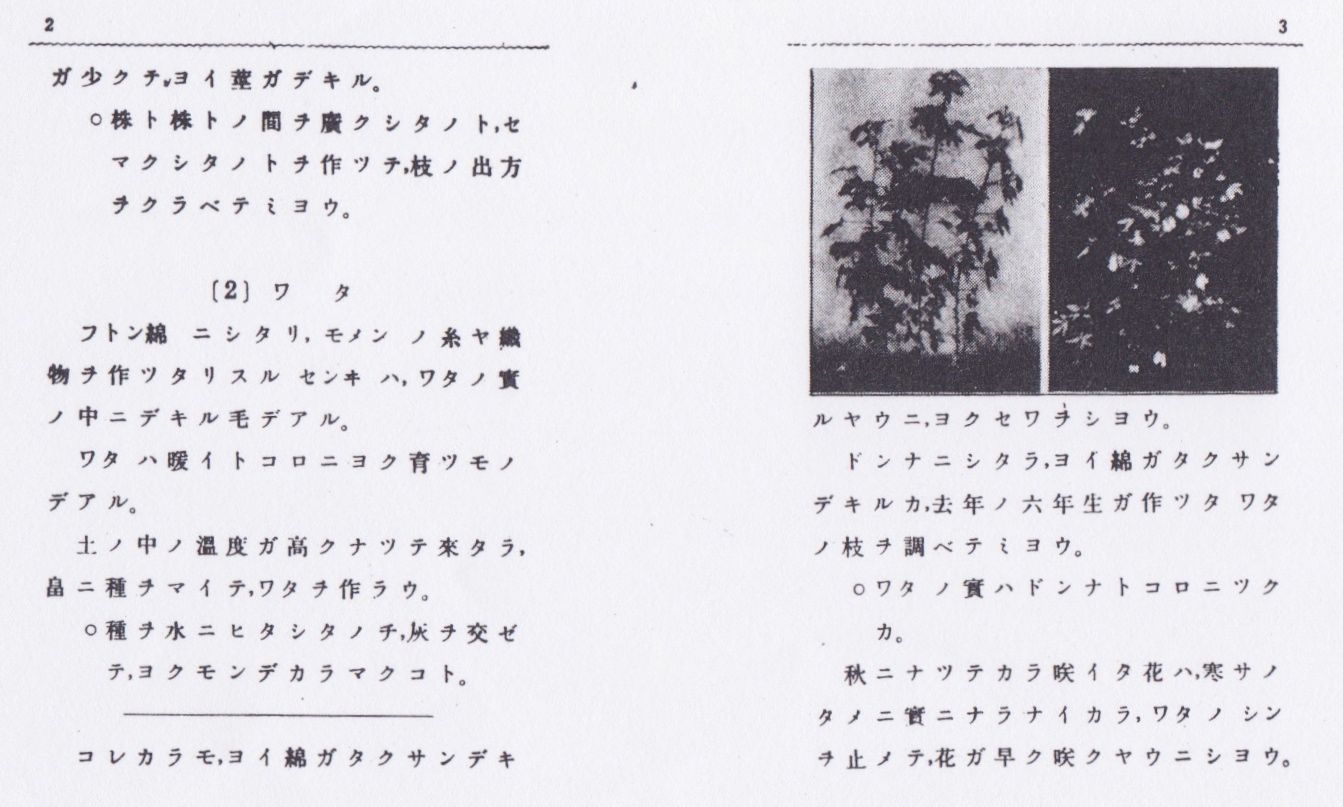 昭和26年の学習指導要領(試案)に、ワタ/ワタの栽培についての記載はない。